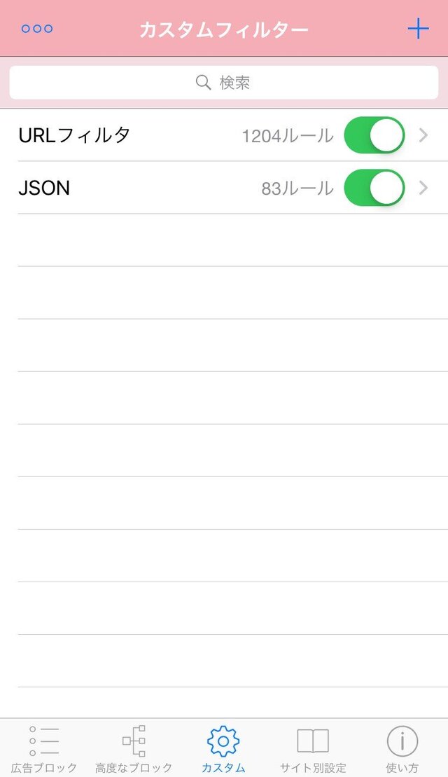 カスタムフィルターを追加できます。アプリにデフォルトで入っているフィルターでは削除されない広告などは、自分でカスタムフィルターを登録することでちゃんとブロックできます(後で紹介します)。